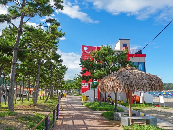 맑고 푸른 바다, 끝없이 펼쳐진 백사장 그리고 뒤편의 울창한 송림이 어우러져 아름다운 경관을 자랑한다.