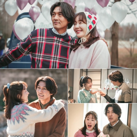 이와 관련 3일(오늘) 엄지원과 이필모의 투 샷 스틸이 공개돼 눈길이 쏠린다. 두 사람은 그 어느 때보다 행복한 모습을 하고 있다. 얼굴을 맞대고, 껴안고 있는 등 애정이 뚝뚝 묻어나 보는 이들마저 절로 미소 짓게 만든다.
