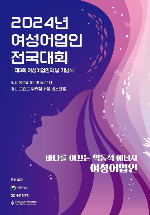 [뉴스서치] 해양수산부는 10월 16일 11시 그랜드 워커힐 서울에서 ‘바다를 이끄는 역동적 에너지, 여성어업인’을 주제로 ‘제3회 여성어업인의 날 기념식’을 개최한다.
