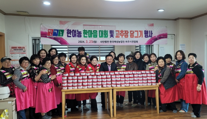 [뉴스서치] 사)한국여성농업경영인 여주시연합회는 3월 25일 흥천면 율극1리 마을회관에서 불우이웃을 돕기를 위한 고추장 담그기 행사와 나눔행사를 가졌다.