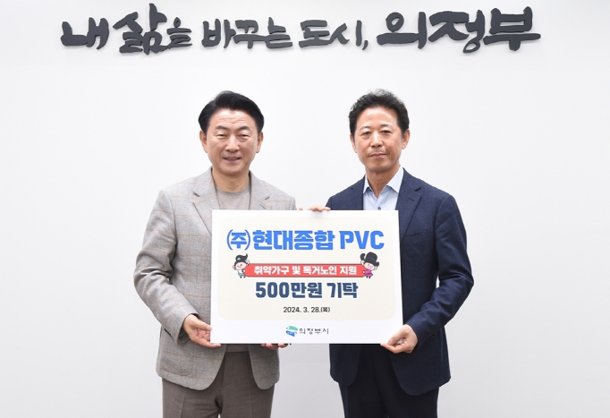 [뉴스서치] 의정부시는 3월 28일 ㈜현대종합 PVC(대표 김재진)가 자금동 취약가구 및 독거노인 지원을 위한 성금 500만 원을 기부했다고 밝혔다.