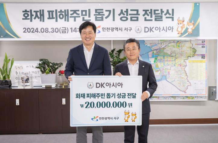 강범석 서구청장은 “지역 내 주민에게 따뜻한 관심과 지원을 해주신 DK아시아에 감사드린다”라며 “피해 주민들에게 큰 위로가 될 것이다”라고 전했다.