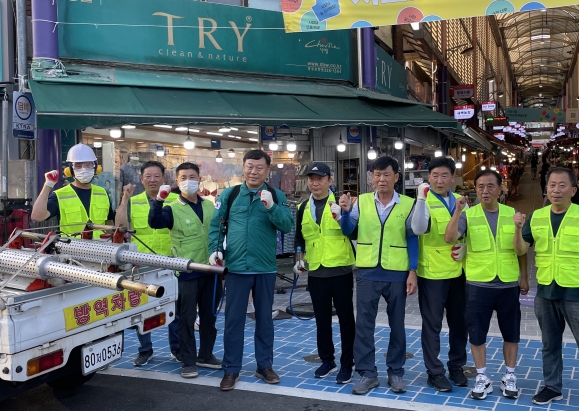 [뉴스서치] 울산 동구 대송동 새마을협의회(회장 홍정흠)는 지난 8월 5일 오후 6시 대송시장에서 김종훈 동구청과 함께 합동 방역 행사를 가졌다.
