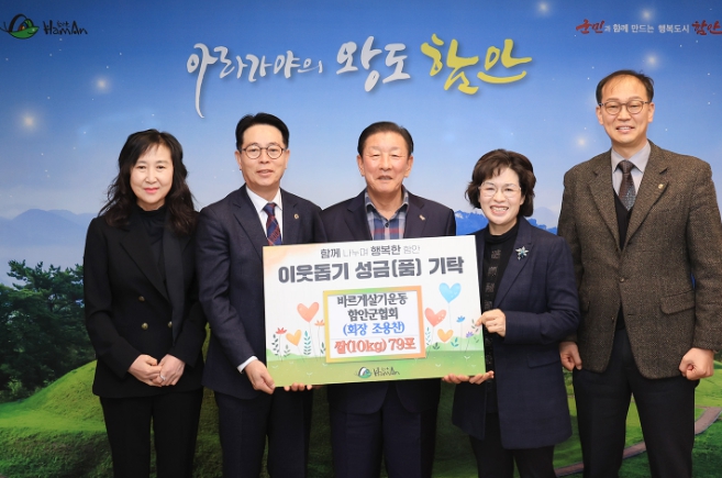 이날 기탁식에는 조근제 함안군수와 조용찬 회장과 관계자들이 참석했으며, 기탁된 물품은 관내 사회복지시설에 전달될 예정이다.