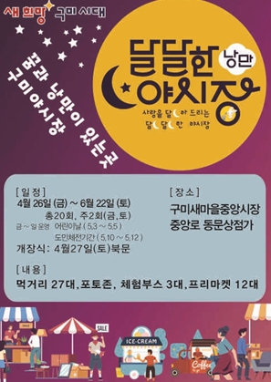 [뉴스서치] 구미시는 4월 26일부터 6월 22일까지 매주 2회(금‧토) 구미새마을중앙시장과 중앙로 동문상점가 일원에서 야시장을 운영한다.