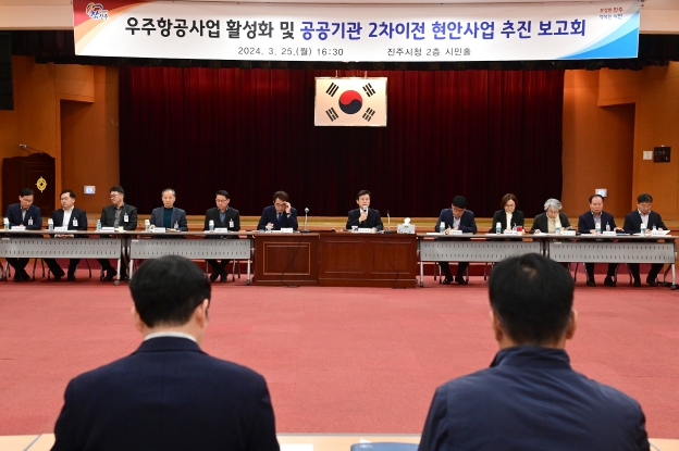 [뉴스서치] 진주시는 지난 25일 시청 2층 시민홀에서 우주항공사업 활성화 및 공공기관 2차 이전 대비 부서별 추진사업에 대한 업무보고회를 개최했다.