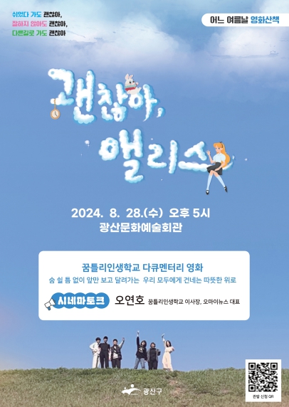광주 광산구는 28일 오후 5시 광산문화예술회관(광산문예회관)에서 다큐멘터리 영화 ‘괜찮아, 앨리스(감독 양지혜)’ 시사회를 개최한다고 밝혔다.