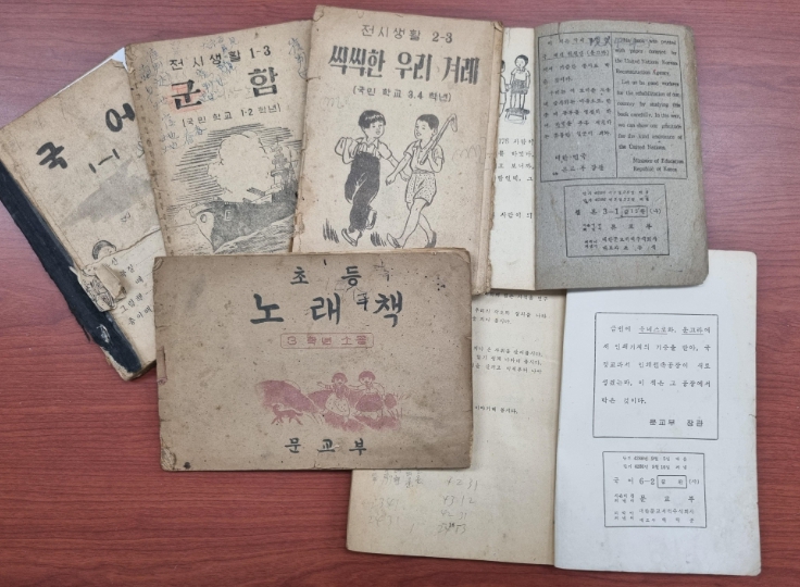 먼저, 1951년부터 1955년 사이에 생산된 전시생활(군함, 씩씩한 우리 겨레), 셈본, 초등노래책, 국어 교과서 등이 눈에 띈다. 특히, UN한국재건위원단(UNKRA) 원조를 받아 발간한 교과서는 1950년대 전시기간 교육정책과 함께 해외 원조내용을 볼 수 있는 교육사‧생활사 측면에서 의미있는 자료이다.