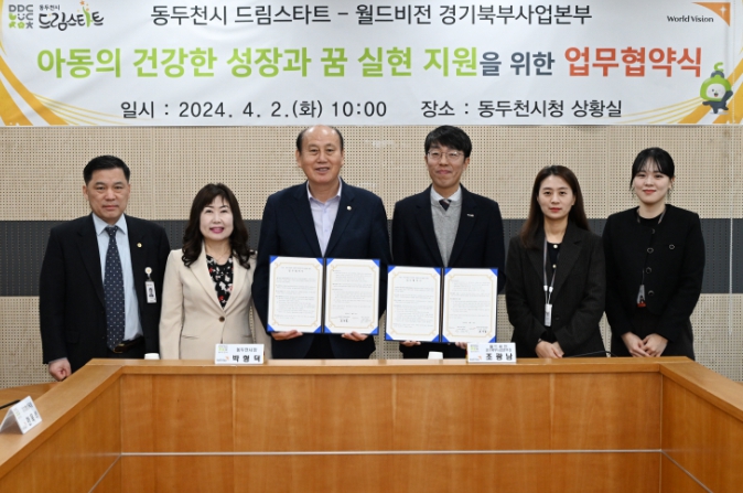 [뉴스서치] 동두천시 드림스타트는 2일, 시청 상황실에서 박형덕 동두천시장과 조광남 월드비전 경기북부사업본부장 및 관계자들이 참석한 가운데 ‘꿈 꾸는 아이들 사업추진’을 위한 월드비전과의 업무협약을 체결했다.