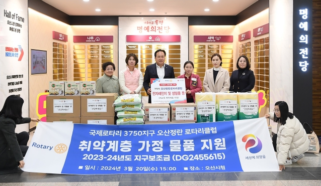 해당 기탁물품은 로타리재단에서 각 지구에 지급되는 지구보조금 사업비를 통해 마련된 것으로 동 행정복지센터와 오산종합사회복지관을 통해 관내 지원이 필요한 저소득 취약계층 7가구에 전달할 예정이다.