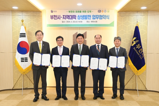 부천시는 가톨릭대학교, 부천대학교, 서울신학대학교, 유한대학교와 지역대학의 상생발전과 지역혁신을 도모하고 우수한 지역인재 양성을 위한 상호협력 체계를 구축하기로 했다.