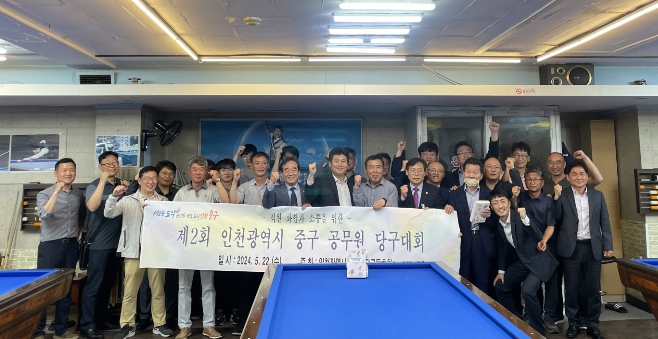 24일 인천 중구에 따르면, 지난 22일 저녁 중구 원도심 소재 모처 당구장에서 열린 이번 대회는 활기찬 직장 분위기 조성과 조직 소통강화를 위해 인천 중구청 공무원 당구 동호회가 주관한 자리다.