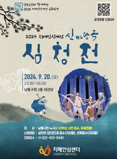 치매인식개선 ‘신(新)마당극 심청전’의 사전신청 및 기타 문의는 남동구보건소 치매지원팀으로 문의하면 된다.