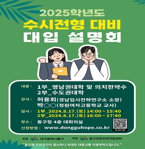 ▲ 대구 동구청, 2025학년도 수시전형 대비 대입설명회 개최 |