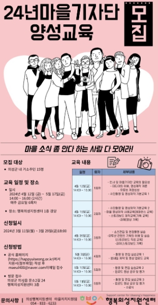 [뉴스서치] 의성군은‘마을기자단 양성 교육’수강생을 3월 29일까지 모집한다고 밝혔다.