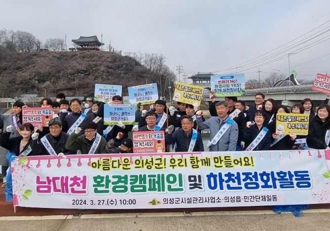 [뉴스서치] 의성군은 27일 남대천 일대 민·관합동으로 환경캠페인 및 하천정화활동을 실시했다.