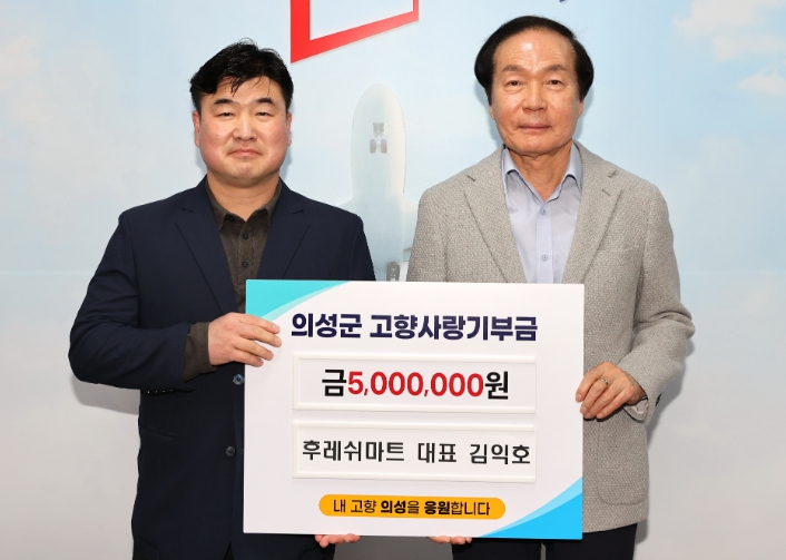 [뉴스서치] 의성군은 25일 의성 후레쉬마트 김익호대표가 고향사랑기부금 개인 최고액인 500만원을 의성군에 기탁했다고 밝혔다.