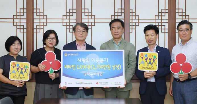 [뉴스서치] 예비사회적기업 평택두레소비자생활협동조합이 지난 22일 평택시청 대외협력실에서 열린 사랑의 이웃돕기 전달식을 통해 1760만 원 상당의 비타민 1000통을 기부했다.