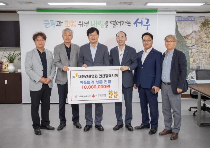 [뉴스서치] 인천 서구는 8월 22일, 대한건설협회 인천광역시회(회장 박은상)로부터 이웃돕기 성금 1,000만원을 전달받았다고 밝혔다.