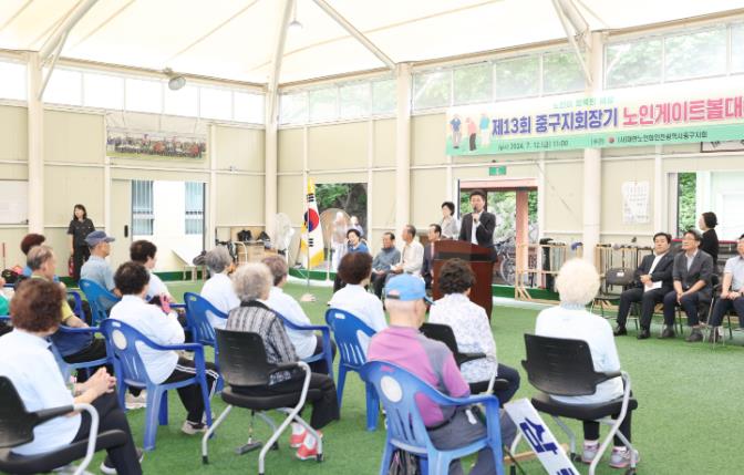 김정헌 중구청장은 이날 개회식에 참석, 시구 참여와 축사를 통해 어르신들과 소통하는 시간을 가졌다.