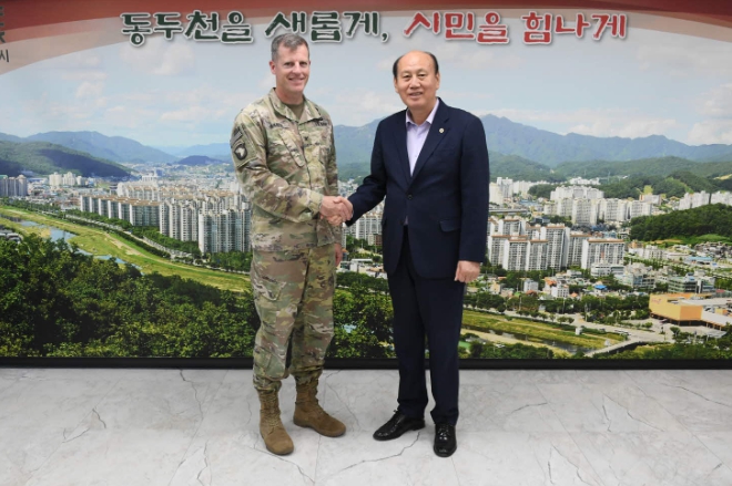 ▲ 미 제3기병연대장, 캠프 호비 배치 후 첫 동두천시장 방문 '강력한 한미동맹 구축' 약속 |