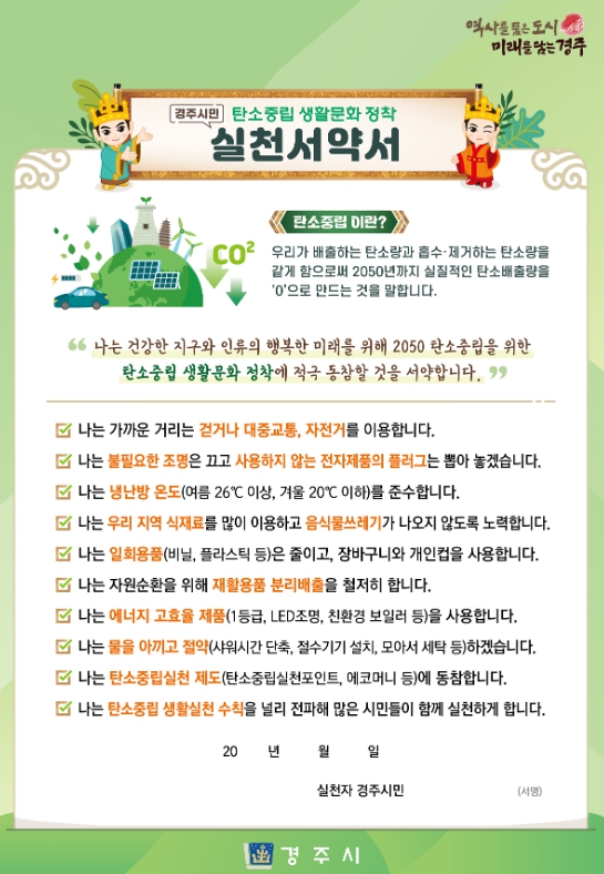 이와 함께 경주시는 탄소중립 실천에 실질적인 성과를 달성하기 위해 ‘탄소중립 시민 실천운동’도 펼치고 있다.