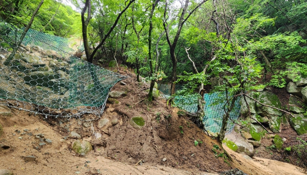 시는 국가유산청 긴급예산(국비) 7억 확보해 먼저 지난 5월부터 7월 중순까지 토석류 방지망 6곳 설치 공사를 추진했다.