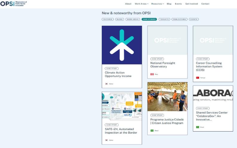 경제협력개발기구(OECD)는 전 세계에 공공 분야 혁신사례를 공유하고 혁신문화를 확산하기 위해 공공혁신협의체(OPSI)를 출범시키고, ’11년부터 전 세계의 정부와 공공부문의 혁신 사례를 매년 조사 발굴하여 우수사례를 선정하고 있다.
