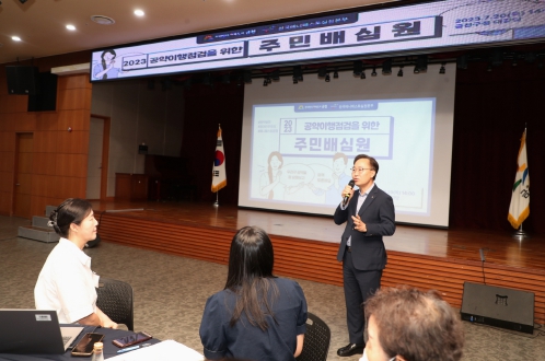 ▲ 작년 7월, 유성훈 구청장이 주민배심원들과 함께 공약이행상황을 점검하고 있다. |