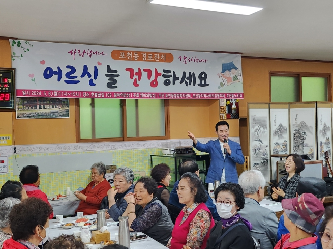 [뉴스서치] 포천동 지역사회보장협의체는 지난 6일 어버이날을 맞아 포천동 소재 엄마의 밥상 음식점에서 ‘포천동 경로잔치’ 행사를 개최했다