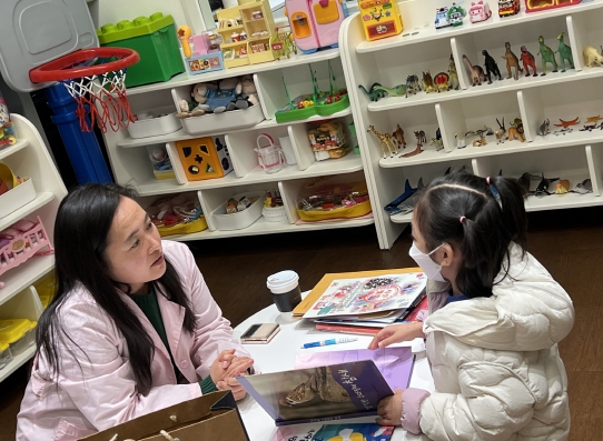 ▲ 대구 수성구육아종합지원센터가 영유아 자녀를 둔 양육가정을 대상으로 진행하는 마음성장상담사업 중 언어치료 모습 |