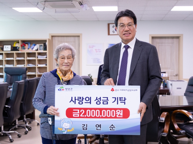 [뉴스서치] 청양군 청양읍에 거주하는 김연순(93세. 사진 왼쪽) 여사가 지난 21일 청양군을 방문해 어려운 이웃에게 전달해 달라며 성금 200만 원을 전달하면서 ‘빈자의 등불’을 밝혔다.