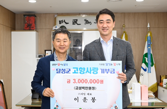 [뉴스서치] 달성군은 ㈜지일 이운봉 대표가 3일 군청을 방문해 고향사랑기부금 300만 원을 기탁했다고 밝혔다.