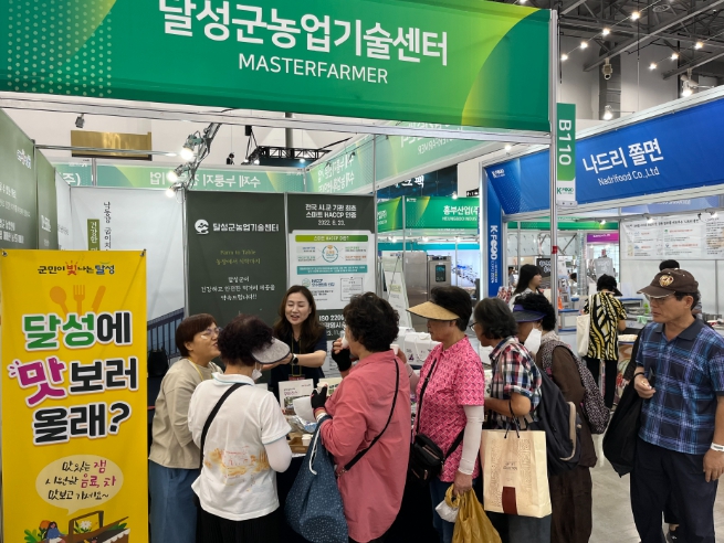 달성군 홍보부스에서는 지역 농산물을 사용하여 생산된 다양한 가공제품을 전시하고 있으며, 농업기술센터의 우수한 제조기술로 생산된 차별화된 제품을 맛볼 수 있도록 시식·시음 행사도 진행하고 있다.