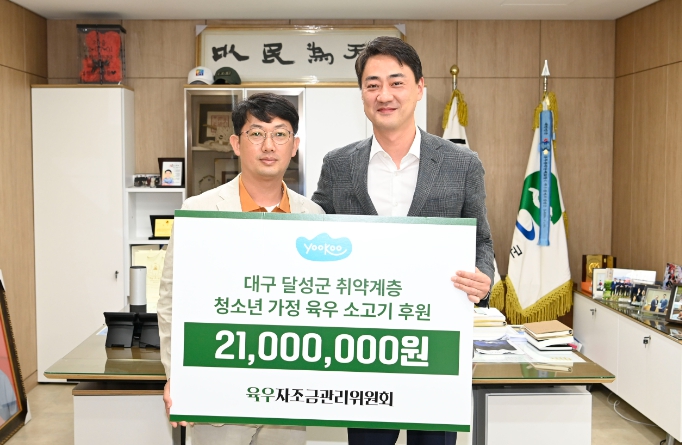 최재훈 달성군수는 “육우자조금관리위원회의 이러한 나눔 활동이 지역아동센터 등 성장기 아이들에게 건강한 성장을 도울 뿐만 아니라, 육우농가에도 큰 도움이 될 수 있기를 희망한다”며 감사인사를 전했다.