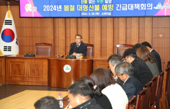 [뉴스서치] 밀양시는 지난 28일 시청 소회의실에서 허동식 밀양시장 권한대행 주재로 봄철 대형 산불 예방 긴급대책회의를 열었다고 밝혔다.
