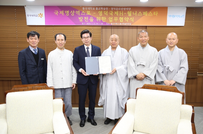 [뉴스서치] (재)영덕문화관광재단과 동국대학교 불교학술원(원장 정묵스님)은 지난 3월 13일 오전 11시 30분 서울국제명상엑스포와 영덕국제H-웰니스페스타 사업의 상호 교류 및 발전을 위한 업무협약을 체결했다.