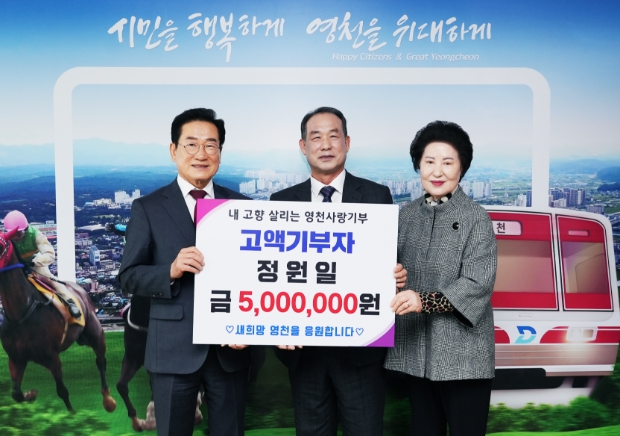 ▲ 영천시는 26일 정원일 변호사로부터 고향사랑기부금 최고한도액인 500만 원을 기탁받았다고 밝혔다. |