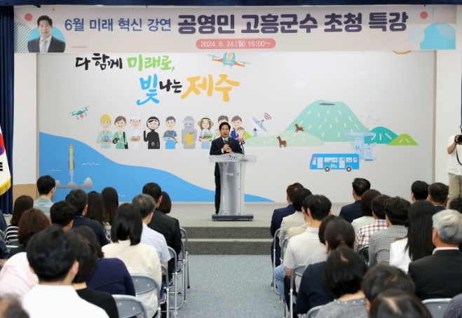 [뉴스서치] 공영민 고흥군수는 지난 24일 오후 제주특별자치도청에서 ‘제주와 나, 그리고 연결’이라는 주제로 특별강연을 진행했다.