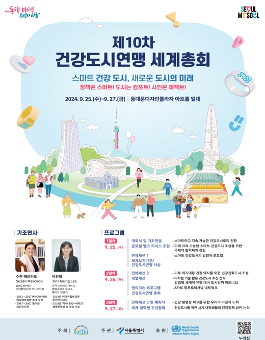 한편, 서울시는 총회 기간 해외도시 시장단과 국제기구 전문가들이 한자리에 모이는 만큼, 건강도시 서울을 알리고 아울러 서울시의 밀리언셀러 정책 등도 소개한다는 계획이다.