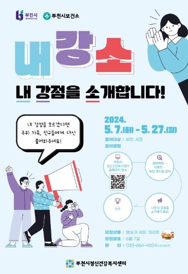 부천시민 누구나 참여 가능하며, 참여자 중 150명을 추첨해 당첨자에게 소정의 상품을 증정할 예정이다. 당첨자 명단은 6월 7일 부천시정신건강복지센터 홈페이지에서 확인할 수 있다.