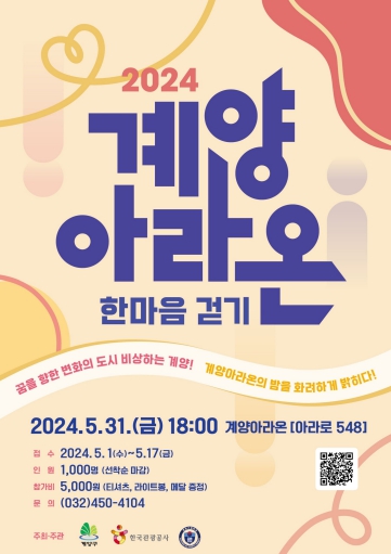계양구는 올해 초 계양 아라뱃길의 관광 활성화를 위해 추진한 관광 거점 명칭 공모를 통해, 지난 4월 아라뱃길 계양 구간의 명칭을 ‘계양아라온’으로 최종 선정했다. 이번 ‘계양아라온 한마음 걷기’ 행사는 계양구가 한국관광공사 주관 공모사업에 선정돼 사업비를 지원받아 올해 처음 추진하는 사업으로, 계양구가 ‘계양아라온’에서 구민과 함께하는 행사로 처음 준비한 만큼 구민의 뜨거운 관심과 기대감을 얻고 있다.