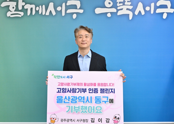 김이강 서구청장은 “지자체장들이 상생과 나눔 문화 조성에 앞장서며 고향사랑 기부제 활성화에 기여할 수 있길 기대한다”며 “서구로 모아진 고향사랑기부금은 착한도시 서구 실현을 위한 마중물로 활용할 계획이다”고 말했다.