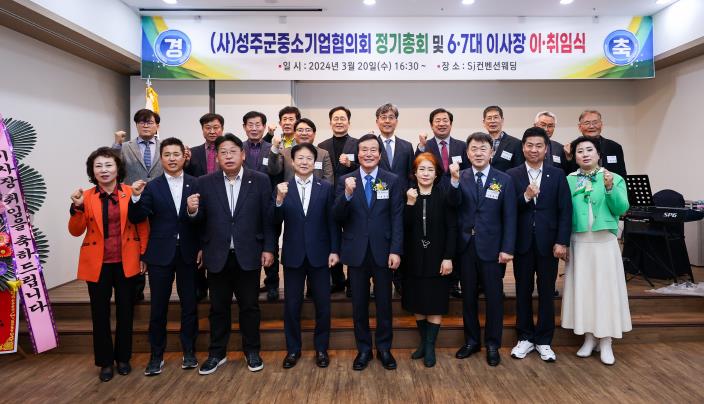 [뉴스서치] (사)성주군중소기업협의회는 3월 20일 16시30분 성주군 SJ컨벤션 3층에서 관내 기업인, 초청인사 등 80여명이 참석한 가운데 정기총회 및 6·7대 이사장 이·취임식을 개최했다.