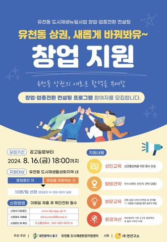 ▲ 대전 중구, 유천동 도시재생 뉴딜사업 지역 창업 및 업종 전환 컨설팅 참여자 모집 |