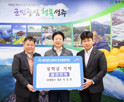 (재)성주군별고을장학회 이사장은 “우리 지역 인재 육성을 위해 소중한 장학금을 기탁해 주셔서 감사드리며 장학사업을 통해 학생들의 성장을 위해 최선을 다 하겠다”고 전했다.