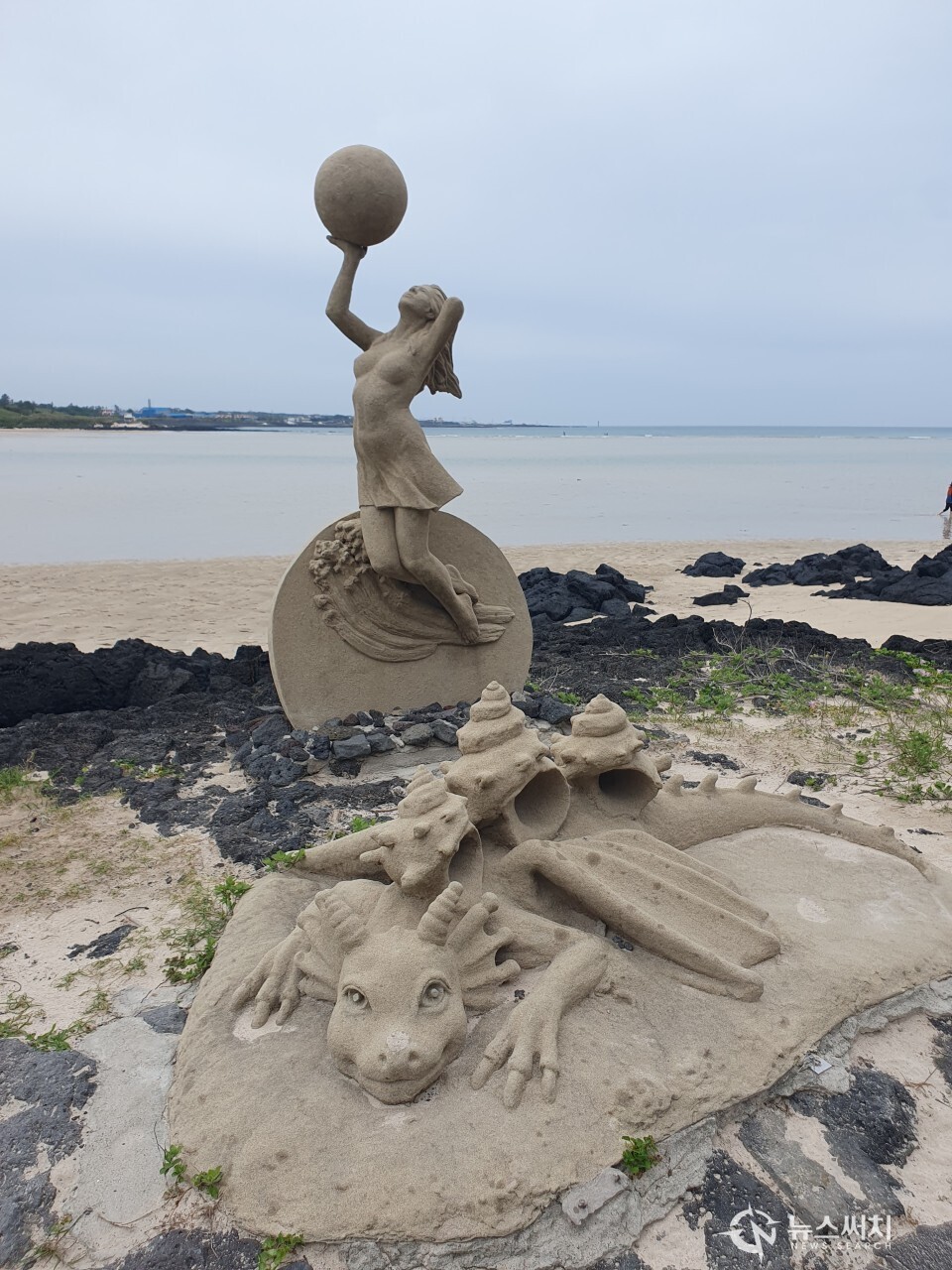 사진은 지난 5월 12일 오후 기자가 촬영한 제주도 표선해수욕장과 신기한 조형물의 모습이다.