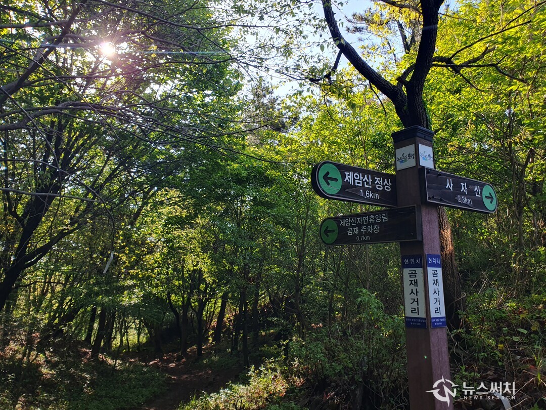 곰재사거리에서 직진 방향이 ‘사자산’이다. 곰재사거리에서 기자는 잠시 고민하다 다른 일정 때문에 사자산 방향으로 가지 않고 제암산 휴양림 주차장 방향으로 하산하는 길을 선택하였다.
