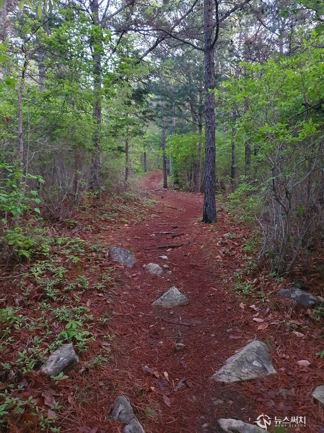 초록이 가득한 숲속에 펼쳐진 오르막 등산로를 따라 1시간 이상 산행을 하다보니 어느덧 환한 햇빛이 얼굴을 따사롭게 비추었고 땀이 약간 나기 시작했다. 오르막 산행을 하면서 땀을 흘리고 가뿐 숨을 고르면서 걷다보면 몸 안에서 잠자고 있던 기운이 온몸에 퍼지는 즐거운 느낌을 자각하게 된다.