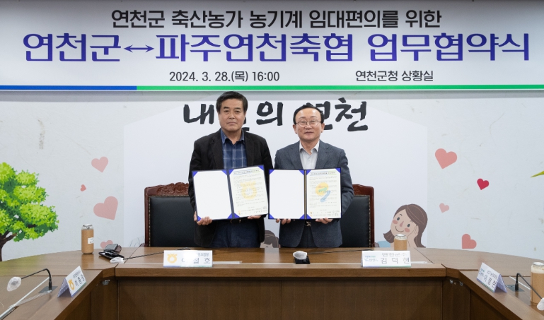 이번 협약으로 군은 농업기계임대사업소에 파주연천축협의 옥수수파종기 등 6대의 축산작업장비를 배치한다. 군은 축산농가의 임대장비 접근성을 높여 사용 편의를 제공하고 임대농기계 이용을 활성화할 계획이다.